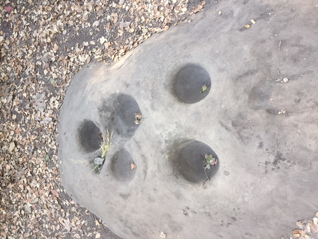 | Chumash Indian mortar embedded in a boulder at Roque Canyon Creek, Santa Barbara, California. Source: Jennifer Osborne, 2017 (Many thanks!). | |||