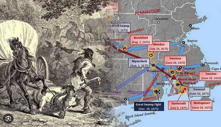 Die Biber waren so gut wie ausgerottet, die Wampums waren stark abgewertet worden und schon sehr viel Land war an die Engländer verkauft worden. Der Landhunger der Engländer war gewaltig, der Druck auf die Indianer wurde immer grösser. Einer der grössten Streitpunkte war, dass das viele Vieh der Engländer immer wieder aus den Farmen der Engländer ausbrach und sich am Mais der Indianer gütlich tat.
