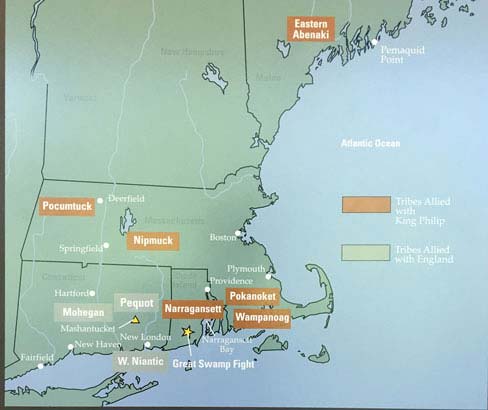 | Überblick über den King Philip's War 1675-1676, Quelle: Thomet Daniel 2018 (Mashantucket Pequot Museum, Connecticut) | |||