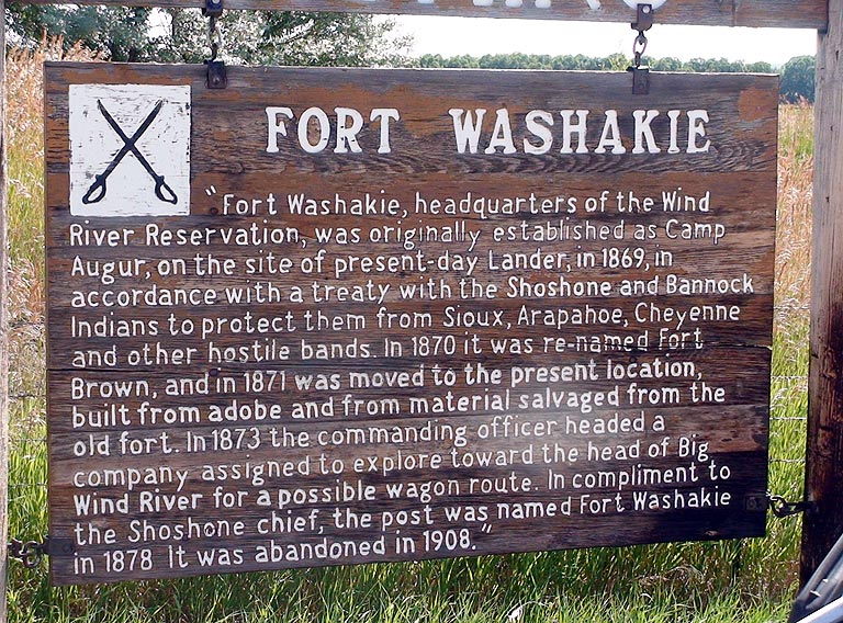| 1869 | Fort Washakie wurde als Hauptquartier der Wind River Reservation an der Stelle der heutigen Stadt Lander Central Wyoming errichtet. | Northern Arapaho (Arapaho) Eastern Shoshone | - |