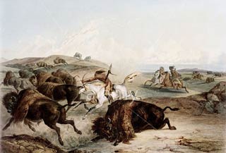 | Bisonjagd, gemalt von Karl Bodmer. Quelle: http://www.alamy.com | |||