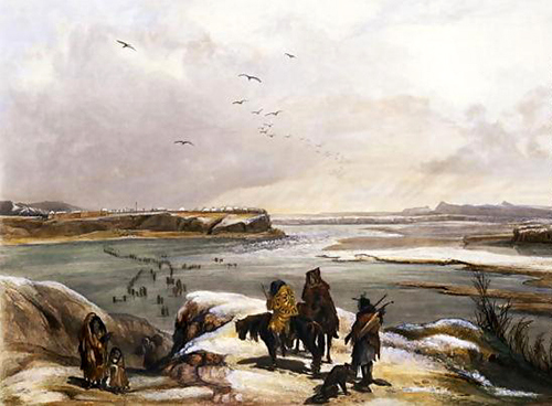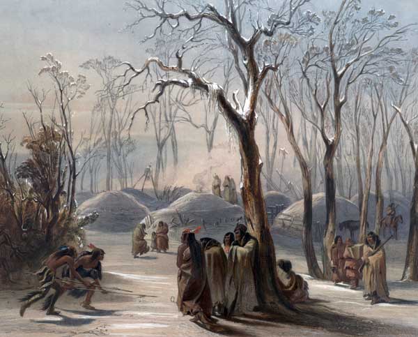 | Ende Februar 1834 | Maximilian zu Wied Expedition 1832-1834 - Ende Februar, als die Sonne wieder stärker schien, kehrten die Mandan in ihre Sommerdörfer zurück. Der Aufenthalt in den Winterlagern dauerte etwa 3,5 Monate. Die Temperaturen in Fort Clark erreichten im Winter 1833/1834 minus 60 Grad! Im Winter gab es oft dünnen Kaffee mit Maisbrot oder Maisbrot mit Bohnensuppe. | Mandan Hidatsa | - |
