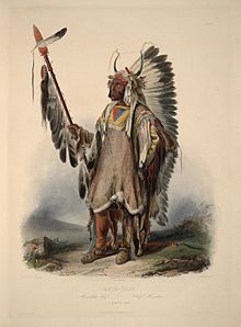 | Vier Bären (Mato-Tope), Häuptling der Mandan. Gemalt von Karl Bodmer 1833. Quelle: http://en.wikipedia.org/wiki/Mandan | |||