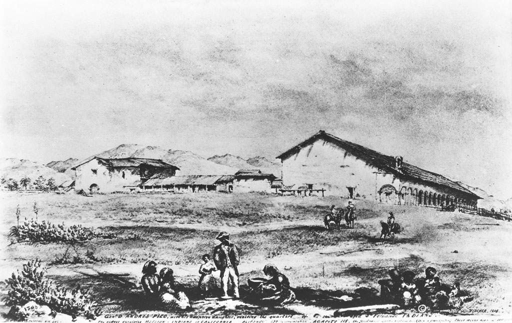 | Mission San Fernando, 1865 Quelle: http://waterandpower.org/museum/San_Fernando_Mission.html | |||