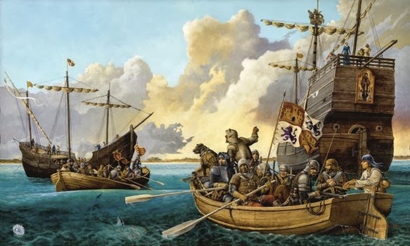 | Ponce de León landet in Florida. Quelle: http://gerard-tondu.blogspot.ch/2014/01/sir-humphrey-gilbert-1537-1583.html | |||