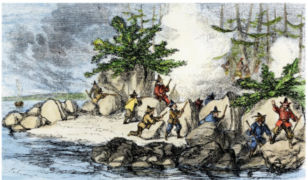 | 2. Mai 1676 | Pilgerväter 1620-1676 - Die entführte Mary Rowlandson wurde gegen ein Lösegeld von 20 Pfund in der Nähe der englischen Stadt Princeton im US-Bundesstaat Massachusetts freigelassen. Der Ort der Befreiung ist heute unter dem Namen 'Redemption Rock' ('Ort der Befreiung') bekannt. Mary Rowlandson schrieb 1682 ein Buch über ihre Gefangenschaft bei den Indianern. In den folgenden Monaten wurden auch die Kinder der Rowlandsons freigelassen. Den Rest des Krieges verbrachten die Rowlandsons bei Freunden in Boston. | Narragansett Pokanoket (Wampanoag) Nipmuk Pocasset (Wampanoag) | Quinnapin Philip Sagamore Sam Weetamoo |