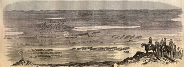 | Zeitgenössische Darstellung der Schlacht am Big Mound aus der Zeitschrift Harper's Weekly. Quelle: http://www.sonofthesouth.net/leefoundation/civil-war/1863/september/sibley-sioux-indian-expedition.htm | |||