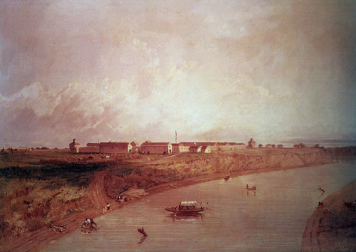| Fort Rice, gemalt von Seth Eastman. Quelle: http://www.legendsofamerica.com/nd-forts3.html | |||