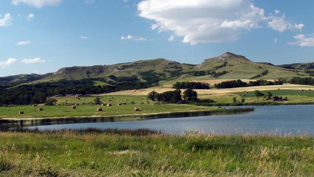 | Gebiet der Killdeer Mountains. Die Indianer zogen sich nach der Schlacht durch die Täler zwischen den Bergen zurück. Quelle: Thomet Daniel 2010 | |||