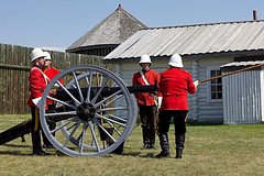 | Soldaten der Northwest Mounted Police NWMP in Fort Walsh im Süden von Saskatchewan / Kanada. Quelle: http://www.flickr.com/photos/canadiantourism/5084973800/meta/ | |||